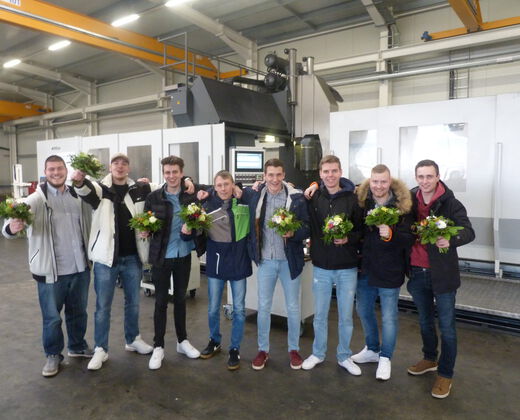 Nach dreieinhalb Jahren haben am 31.01.2019 alle 8 Azubis des Jahrgangs 2014 ihre Ausbildung erfolgreich abgeschlossen. Die erfreuliche Nachricht erfuhren die jungen Männer in diesem Jahr bei uns im Haus, da der letzte Teil der Prüfung, die Verteidigung des Prüfungsstücks, erstmals hier stattfand. Dies war allerdings nicht die einzige positive Nachricht an diesem Tag...